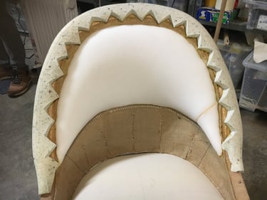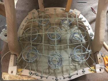 La mousse est découpée selon les dimensions exactes du siège pour être posée sur un guindage traditionnel de ressorts. Cela apporte souplesse et confort.